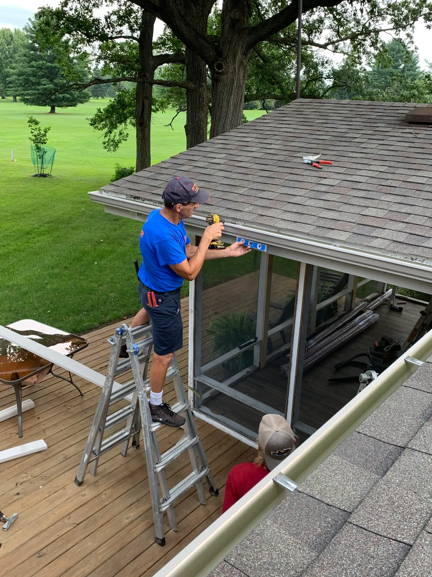 We work both ways. Many roofers keep us as their dedicated gutter crew. Others introduce us directly as the gutter specialist.